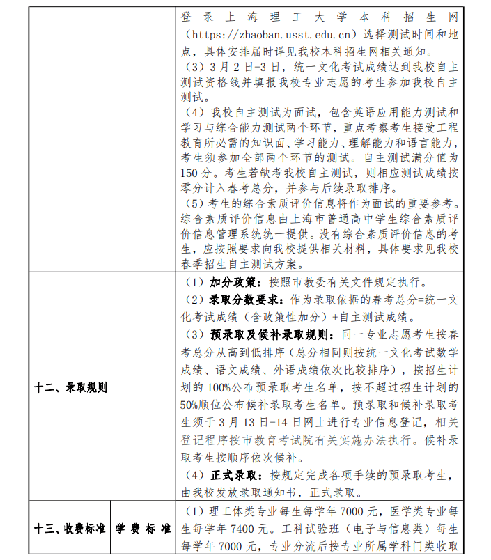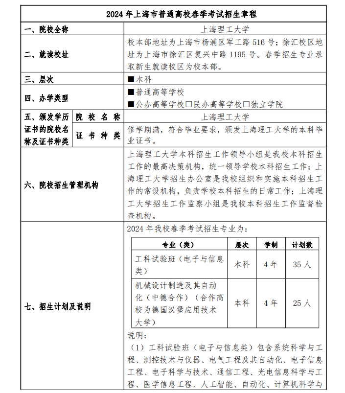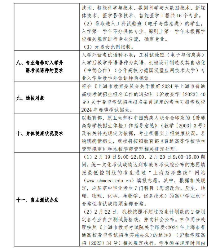 2024年上海市普通高校春季考试招生章程